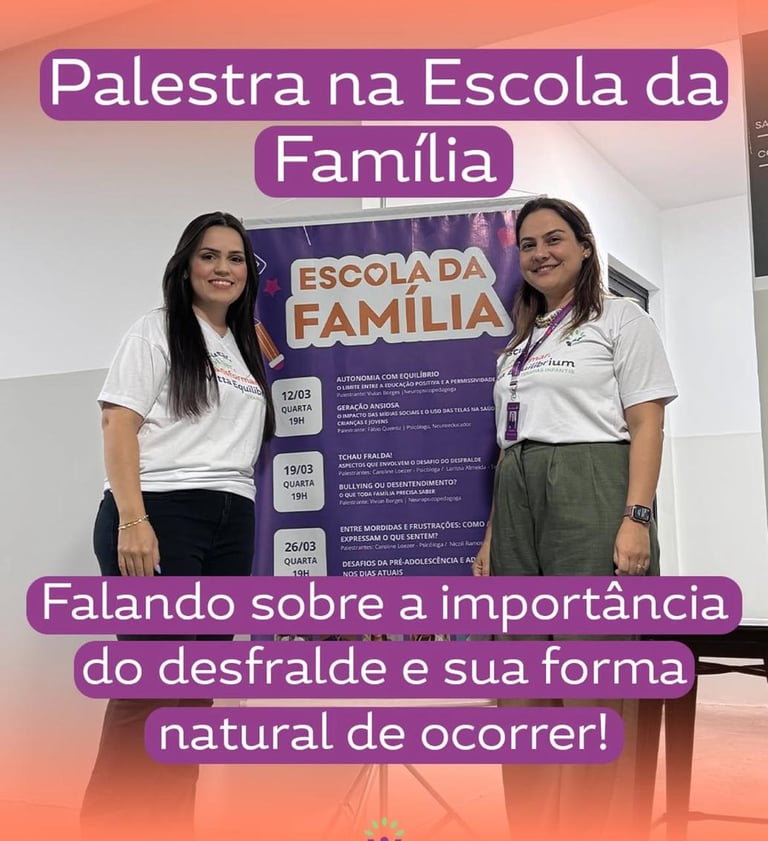 A terapeuta ocupacional Larissa Cardoso, junto com a psicóloga Caroline Loézer, foram convidadas para palestrar aos pais de uma escola particular de Sorocaba, no dia 25/03/2025. Falaram sobre a importância do Desfralde no desenvolvimento infantil, tirando dúvidas e orientando os pais para essa fase tão importante.